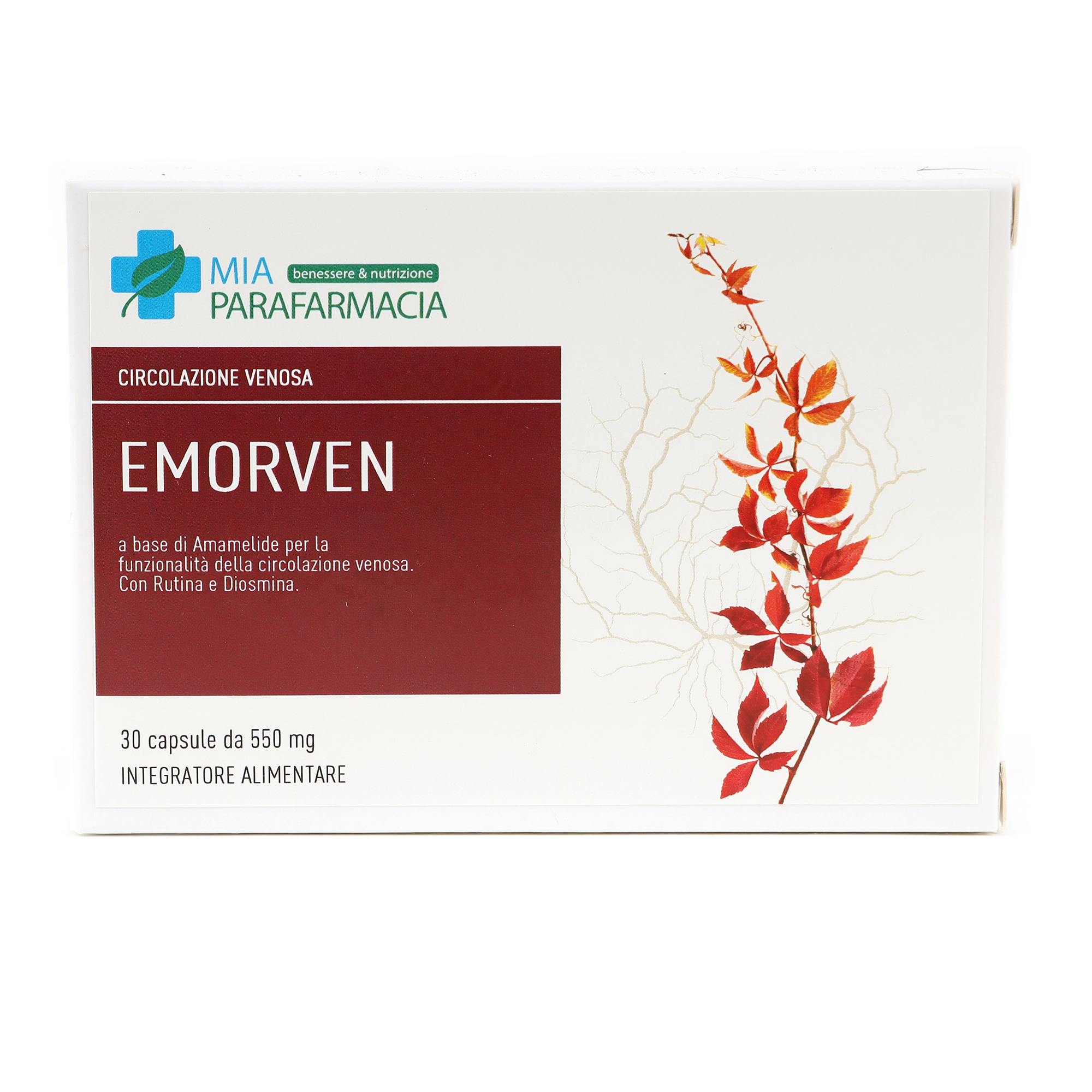EMORVEN è un integratore alimentare a base di flavonoidi Diosmina, Esperidina e Rutina. Contiene Amamelide che contribuisce alla funzionalità della circolazione venosa e del plesso emorroidario e Vite Rossa ad azione antiossidante e di supporto alla funzionalità del microcircolo.