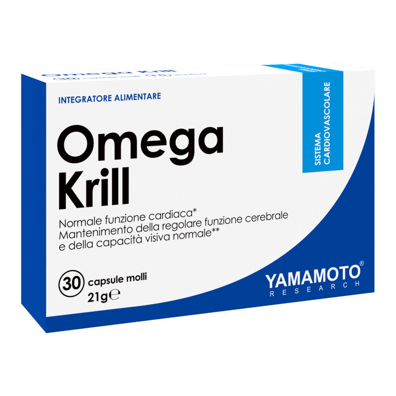 Yamamoto® Research Omega Krill è un integratore alimentare a base di olio di krill antartico ricco di acidi grassi Omega-3, in particolare EPA e DHA. L’EPA e il DHA contribuiscono alla normale funzione cardiaca* (l’effetto benefico si ottiene con l’assunzione giornaliera di 250 mg di EPA e di DHA). Inoltre il DHA contribuisce al mantenimento della regolare funzione cerebrale e della capacità visiva normale** (gli effetti benefici si ottengono con l’assunzione giornaliera di 250 mg di DHA).